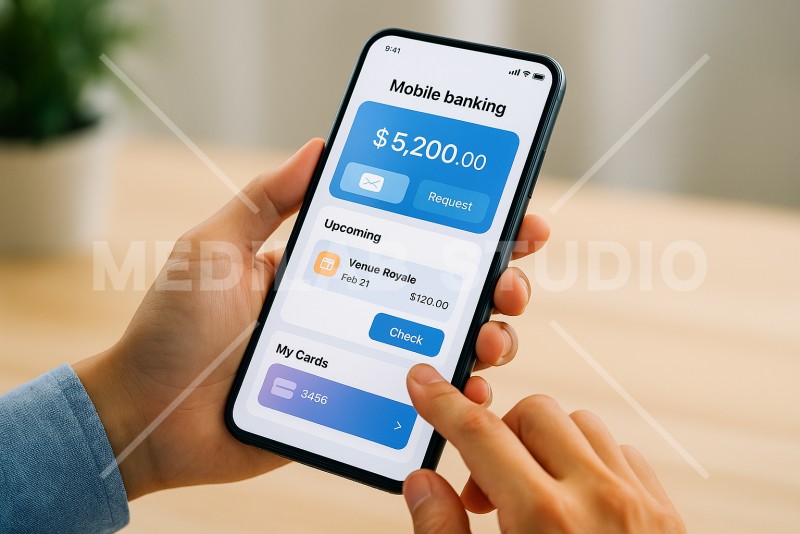 ネットバンキング系アプリの操作をイメージ。シンプルで見やすい設計。