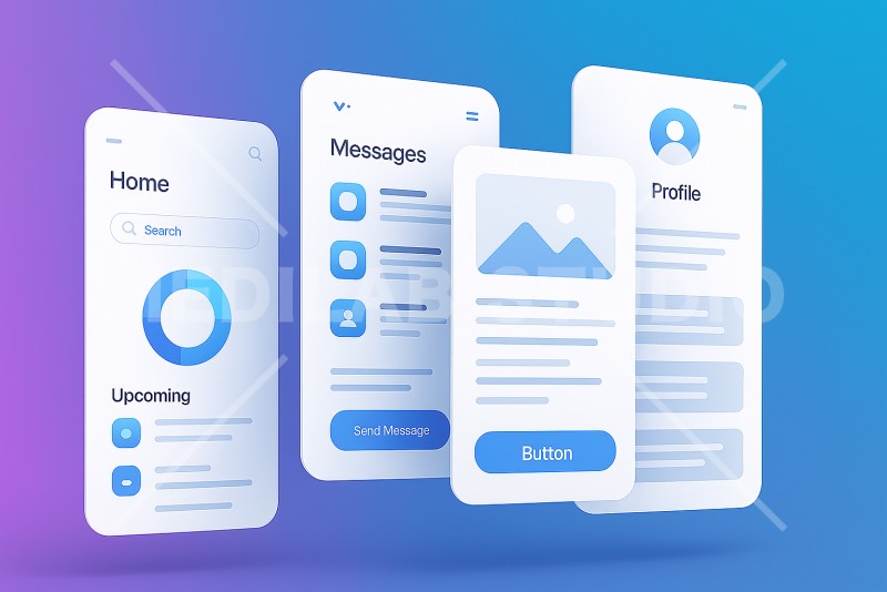 アプリのUIイメージが浮かんでいる様子。イメージをふくらます工程をイメージ。