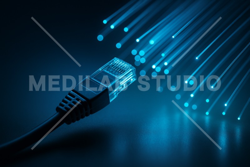 ネットワーク回線がつながるイメージ図。光の束が集まる印象的な構図。