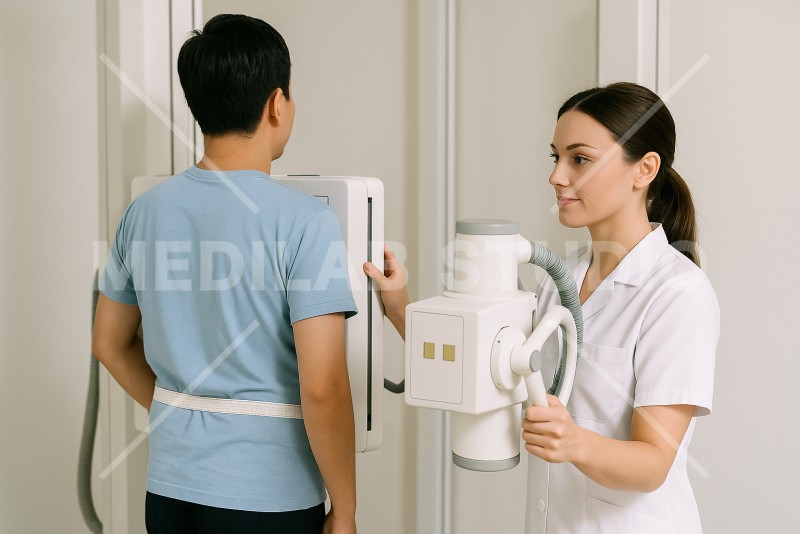 健康診断でのレントゲン検査のイメージ。男性が検査を受けている様子。