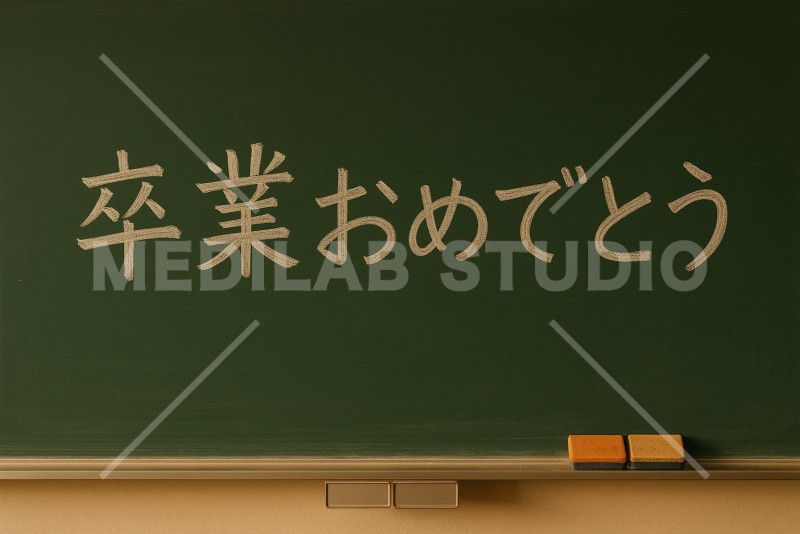 卒業式の日の黒板。担任から「卒業おめでとう」のメッセージ。