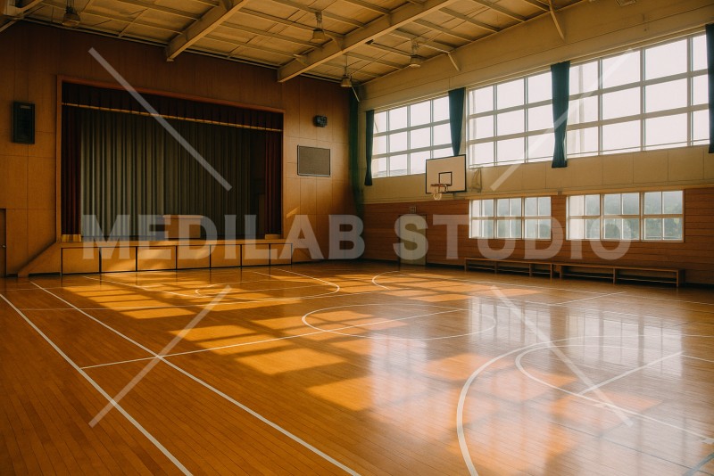 自然光が差し込んでいる学校の体育館