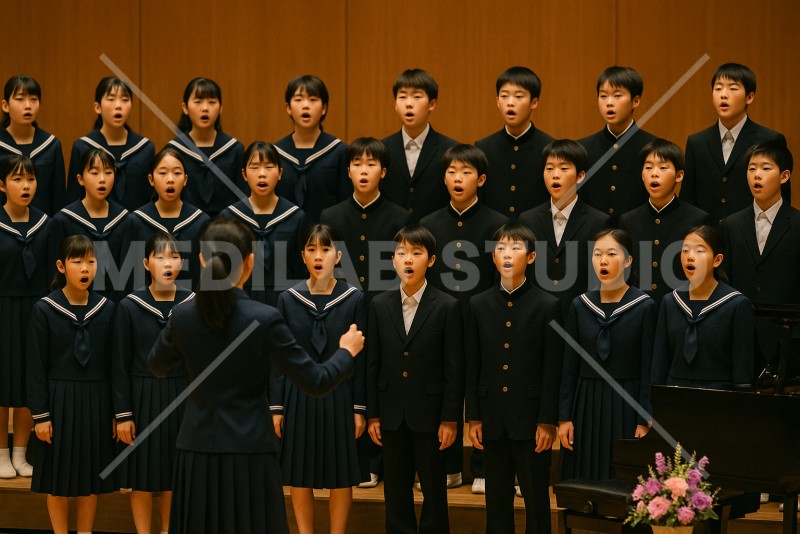 中学生の合唱コンクールの様子。心をひとつに歌っている様子。