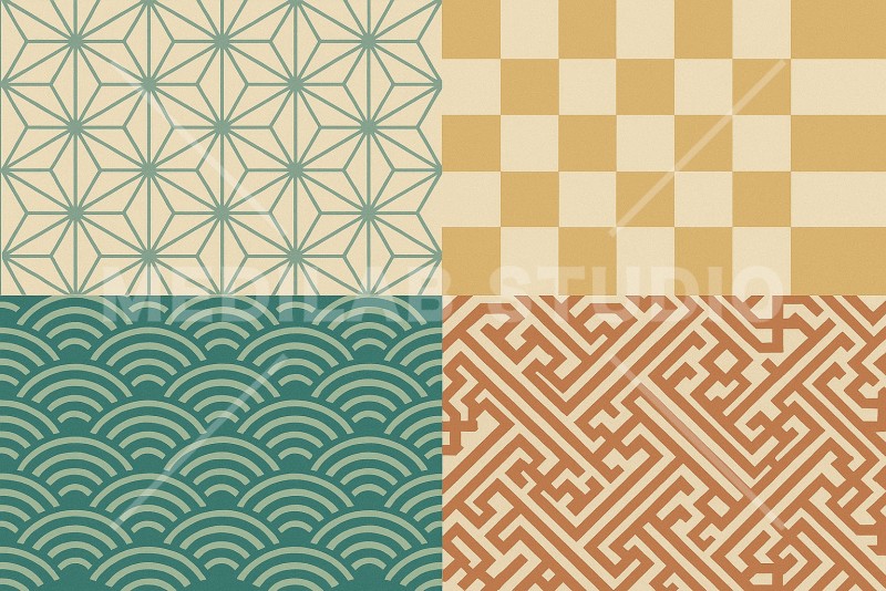 日本の伝統的な模様が組み合わせられた幾何学模様デザイン。日本を感じる雰囲気に。