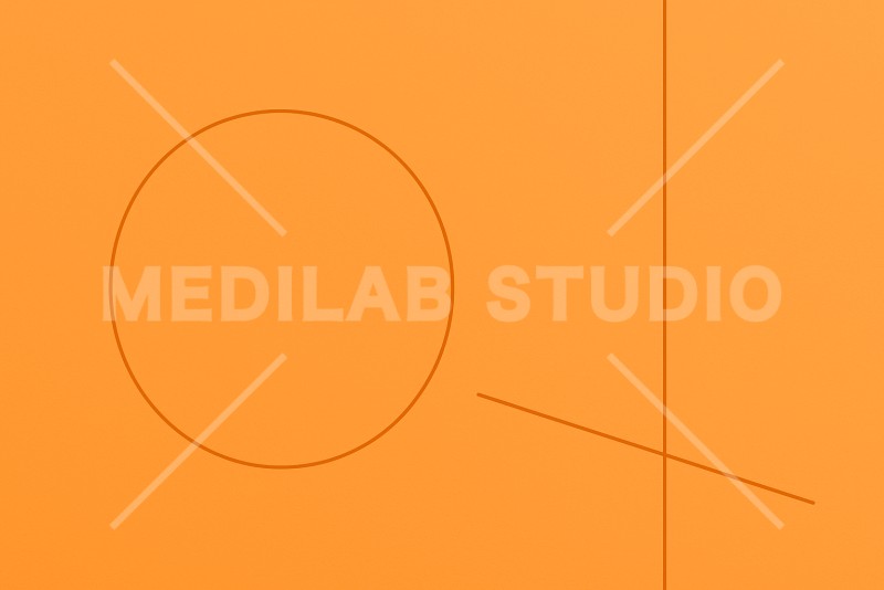 オレンジ基調のミニマル背景。円と直線がデザインされたシンプルな構図。