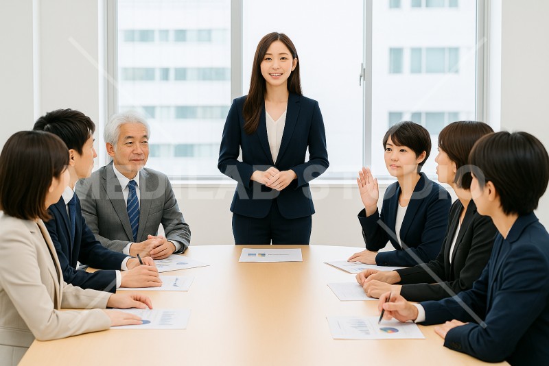 会議の場でファシリテーションする女性