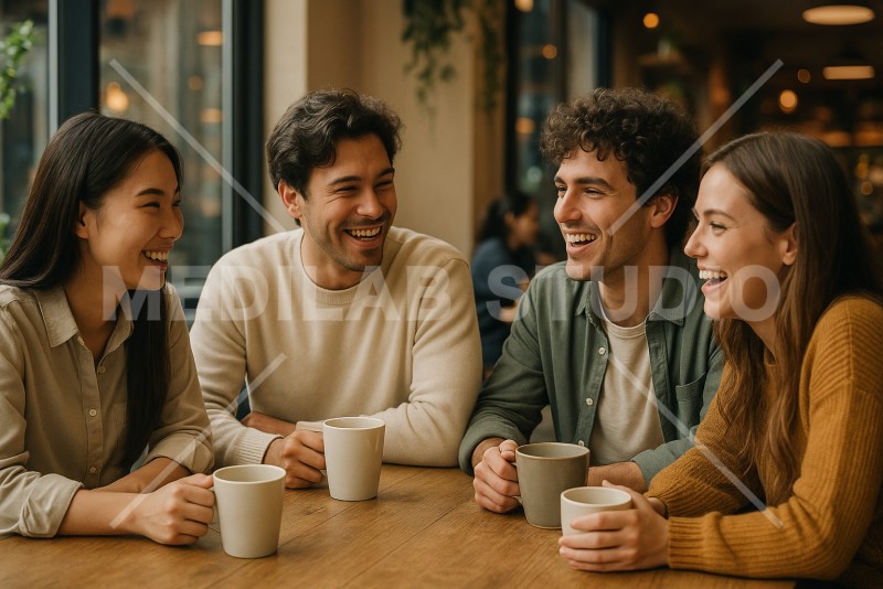 キャンプに出掛けた20代の友人グループが談笑している様子