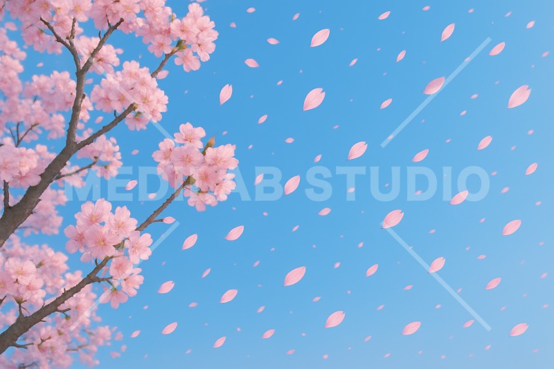 桜吹雪が舞っている春の青空
