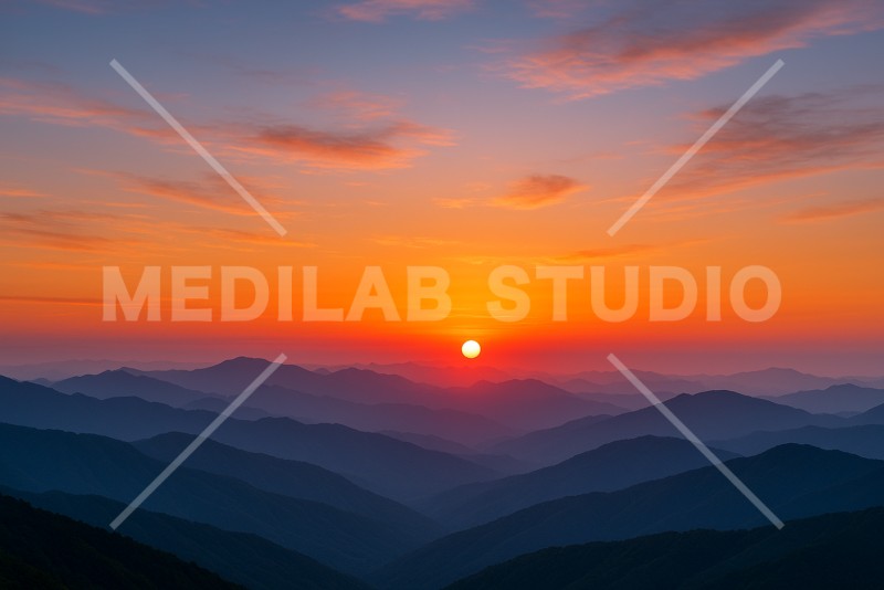 高い山の上から見た初日の出の様子