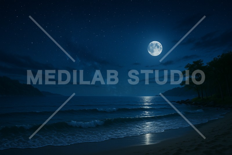 夏の夜、月明かりが海の水面にあたっている様子