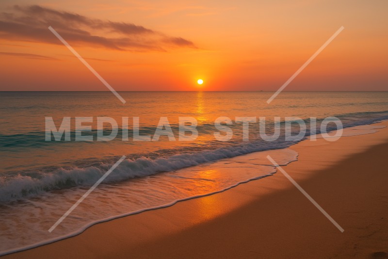 夕焼けの時間帯、真っ赤な空と穏やかな海のコラボレーションです。