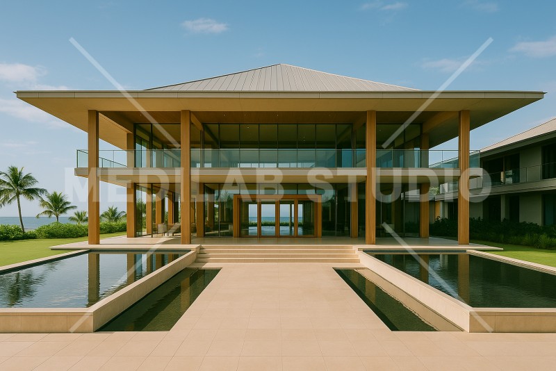 スタイリッシュで近代的なリゾートホテル施設をイメージ。シンプルかつ美しい形が特徴的。