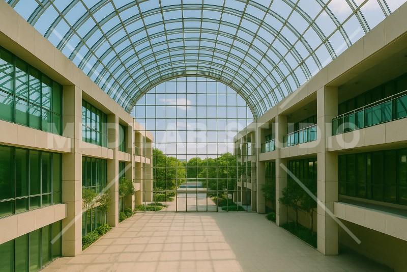 全面がスタイリッシュなガラスドームで囲まれたような、近代的なショッピングモールをイメージした施設。