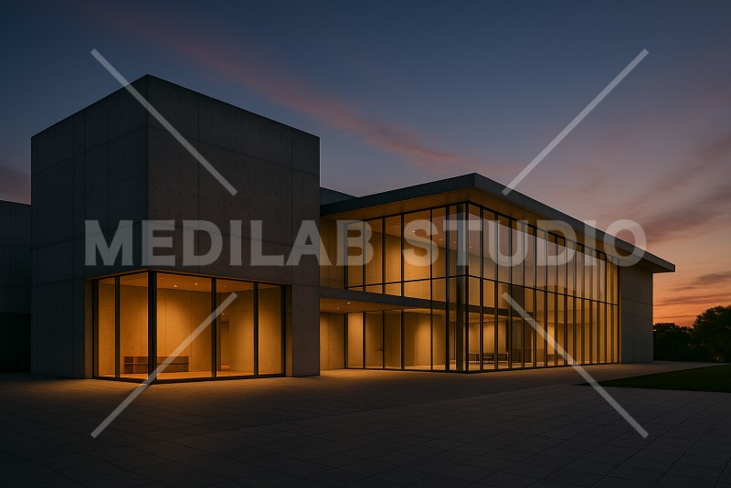 リバーサイドにあるオフィス街で、近代建築が建ち並ぶ夜景