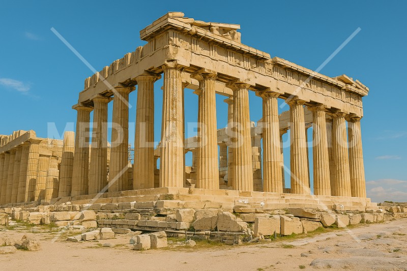 海外にある歴史の深い建造物をイメージ。石造りの大きな柱が並ぶ建物。