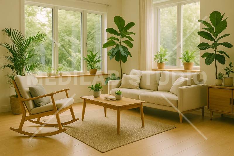 ロッキングチェアがあるナチュラルリビングインテリア