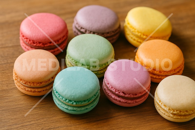 色とりどりのマカロン。やわらかいパステルカラーが特徴的。