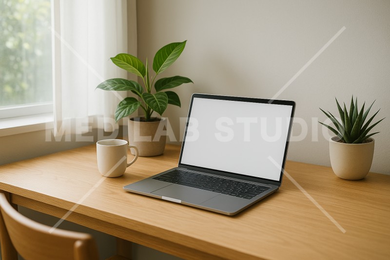 リモート勤務の人が自宅での作業用に用意したワーキングスペース。観葉植物があるナチュラルな雰囲気ある空間。