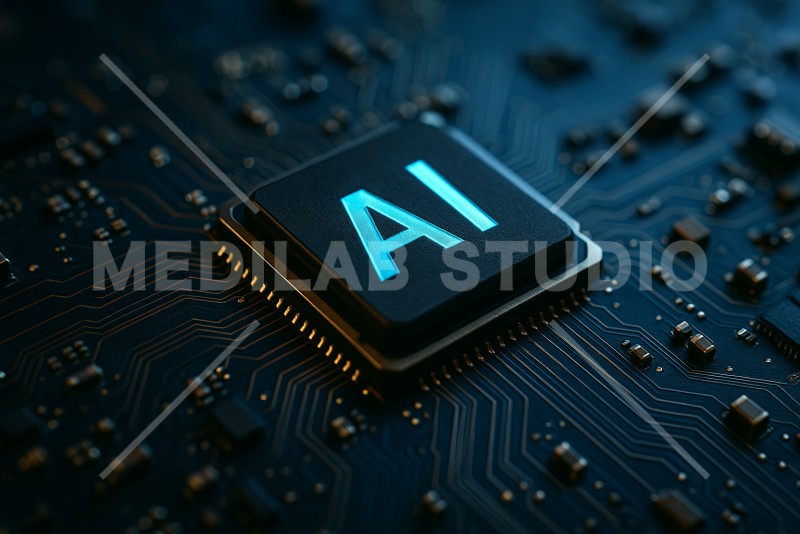 AI搭載のコンピューター基盤のイメージ。近未来的な雰囲気。