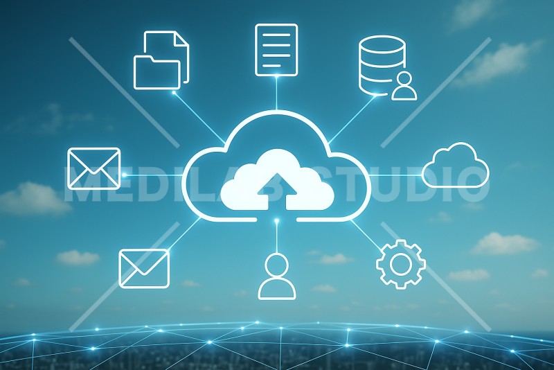 クラウド技術を通じてあらゆるツールがひとつにつながっていることを示すイメージ図。