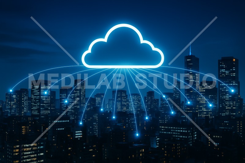 クラウドを通じたネットワーク上のつながりイメージ