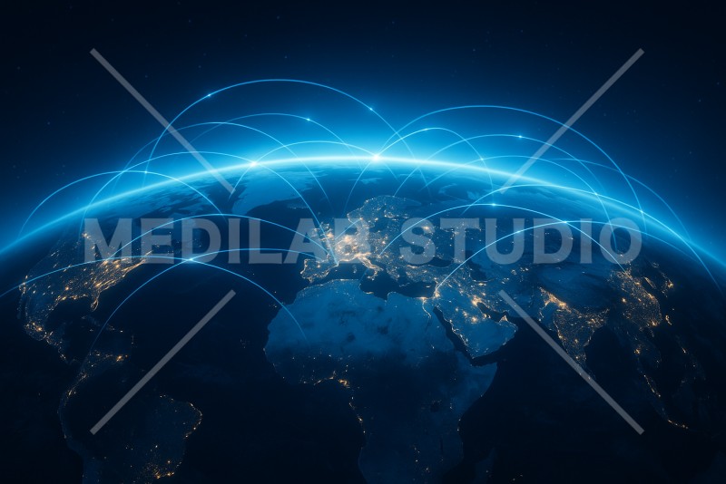 世界全体がネットワークを通じてつながっている様子を表現したイメージ。