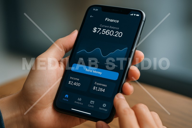 財産や家計を管理するファイナンス系アプリのUIイメージ。