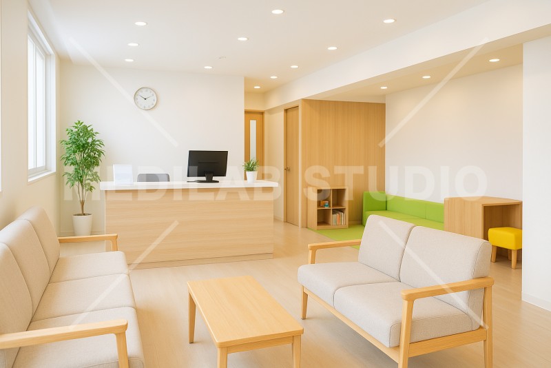 キッズスペースがある街のクリニック待合室