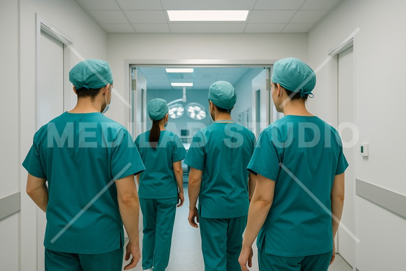 手術室に向かう外科医たちの背中