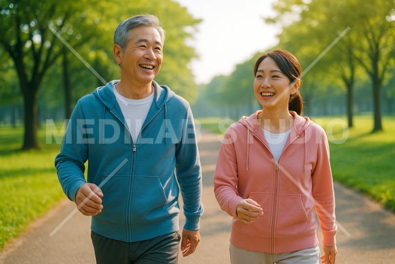 健康管理・病気予防のためにウォーキングを取り入れている男女。