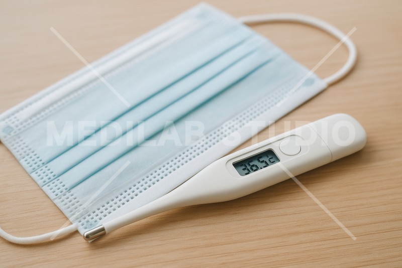 風邪などを予防するためのマスクと、健康管理のための体温計。