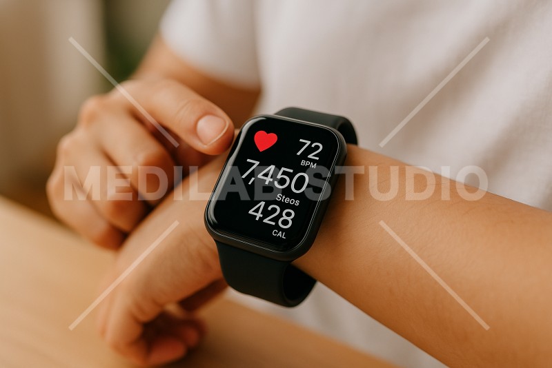 健康管理のためにスマートウォッチの機能を活用している人の手元。