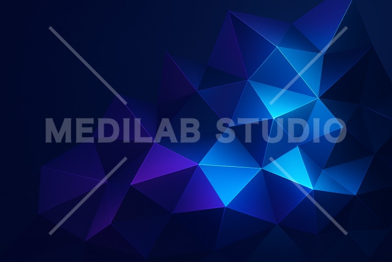 青と紫のグラデーションが交差し、鋭い多角形が立体的に輝くデザイン。幾何学模様が放つ光の反射が、静寂の中に未来的なエネルギーを感じさせます。