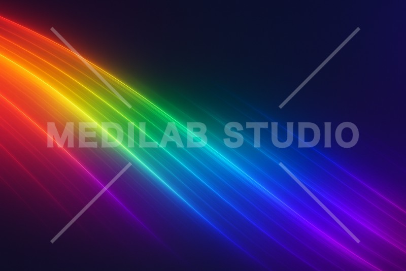 深いネイビーの背景を貫く、虹色の光の帯が流れるように走るデザイン。赤から紫へと続くグラデーションが美しく、スピード感と幻想的な雰囲気を兼ね備えています。見る人の心を動かす、エネルギッシュで鮮やかな1枚です。