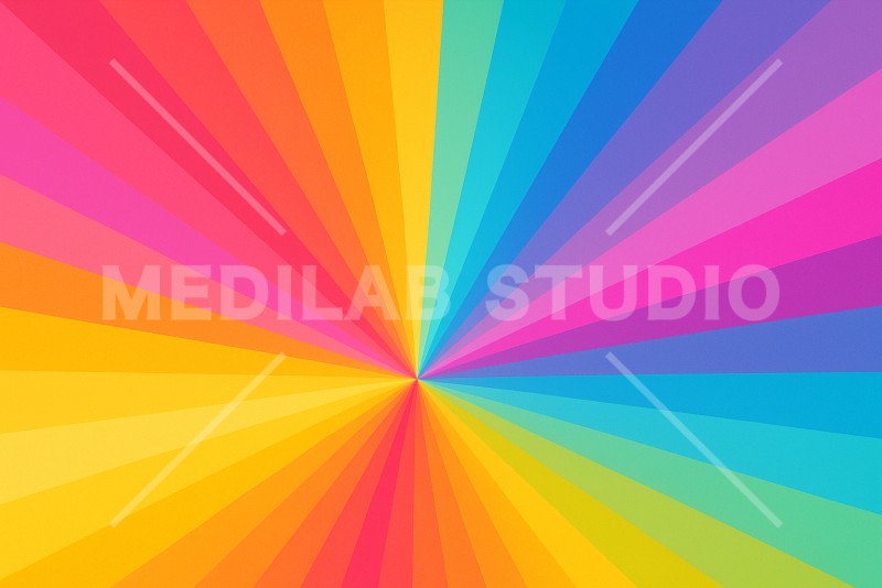 カラフルなラインが放射線状に広がる印象的なデザイン。元気さ・ポップさをイメージ。