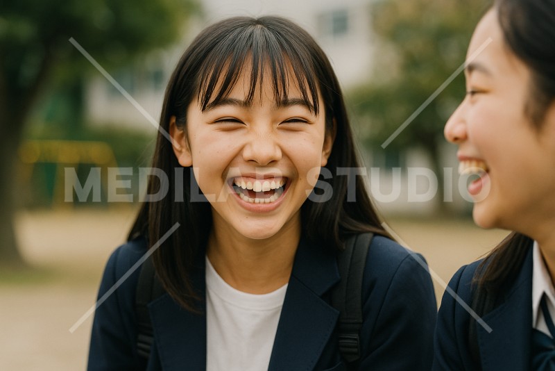 健康的な雰囲気の日本人女性がカメラ目線で笑顔