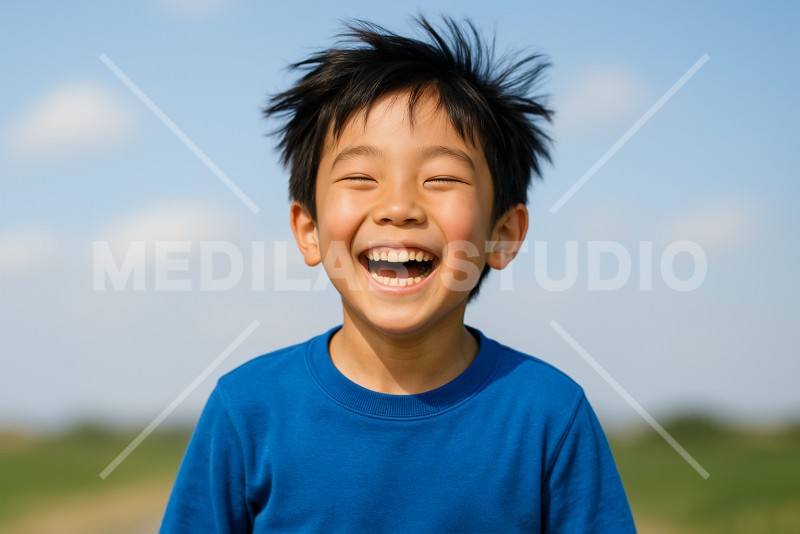 わんぱくな小学生の少年が笑顔を浮かべている様子