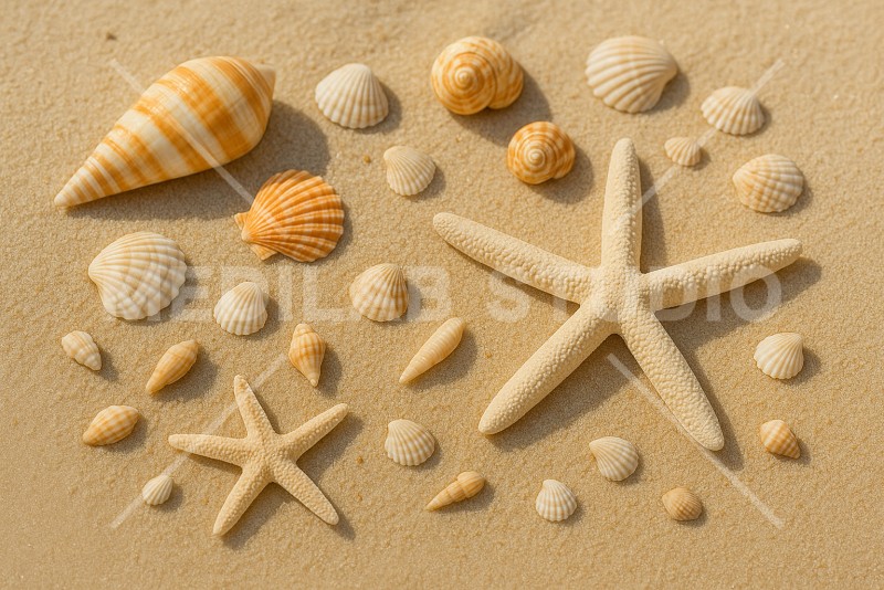 ビーチで集めた貝殻やサンゴを並べた様子。白を基調とした美しい海の拾得物。
