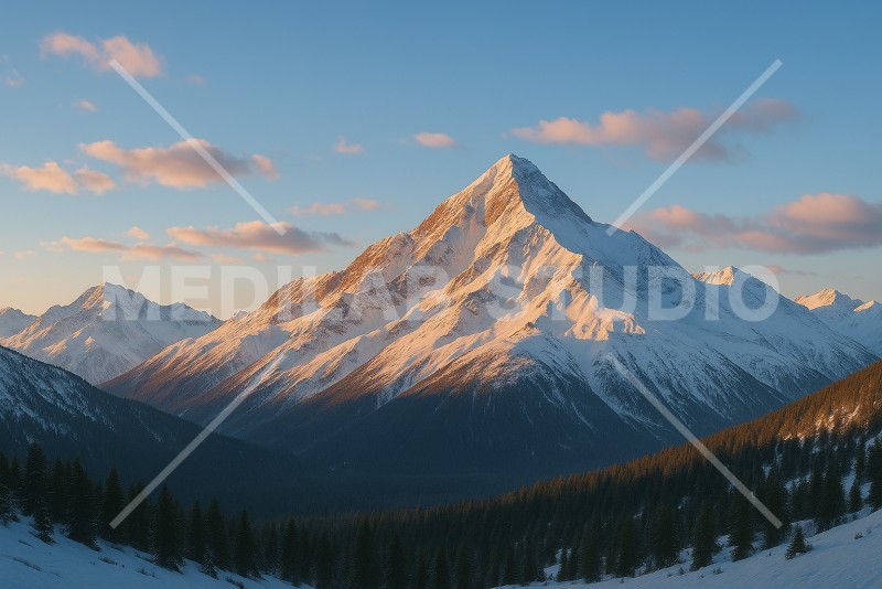 降雪した日の荘厳な山の様子