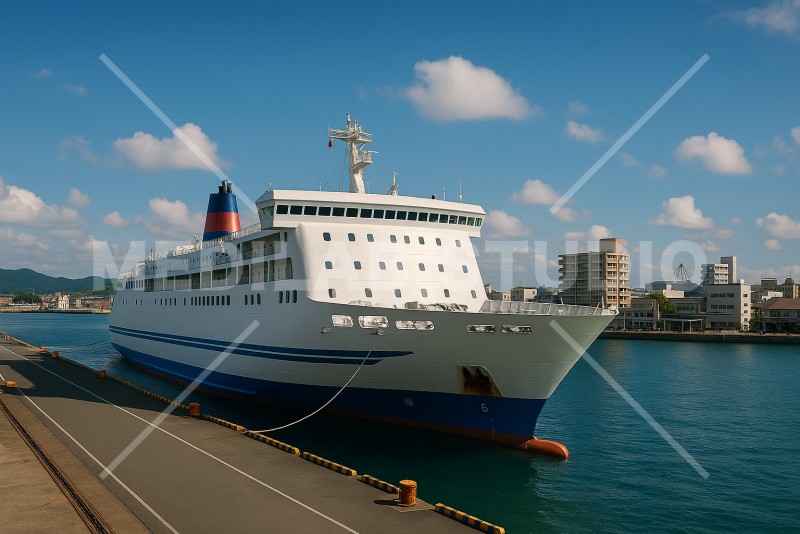 港に停泊している観光用の船。晴れた日の清々しい雰囲気。