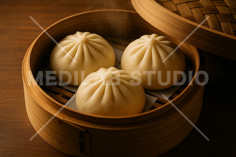 せいろで蒸したあつあつの中華まん。ふっくらとやわらかく温かい様子が伝わる構図。