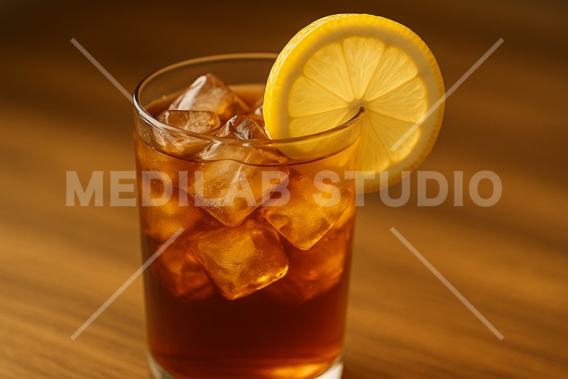 氷がたっぷり入ったアイスティー。レモンをさしておしゃれな雰囲気に。