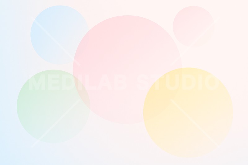 淡い色の円がかさなるカラフルな背景デザイン。円は大小さまざまでグラデーションカラー。